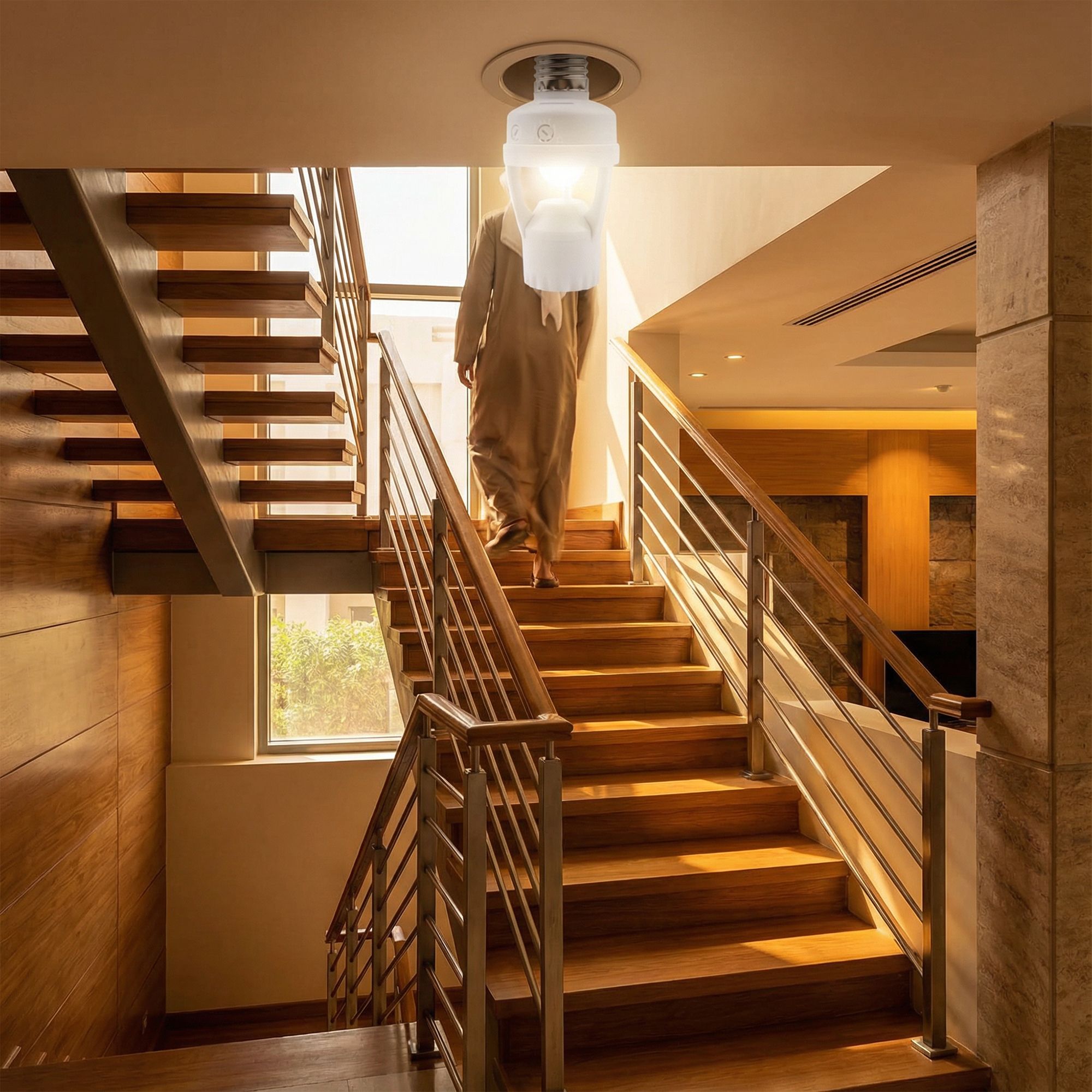 مع حامل المصباح الذكي يعمل الضوء فقط عند الحاجة.